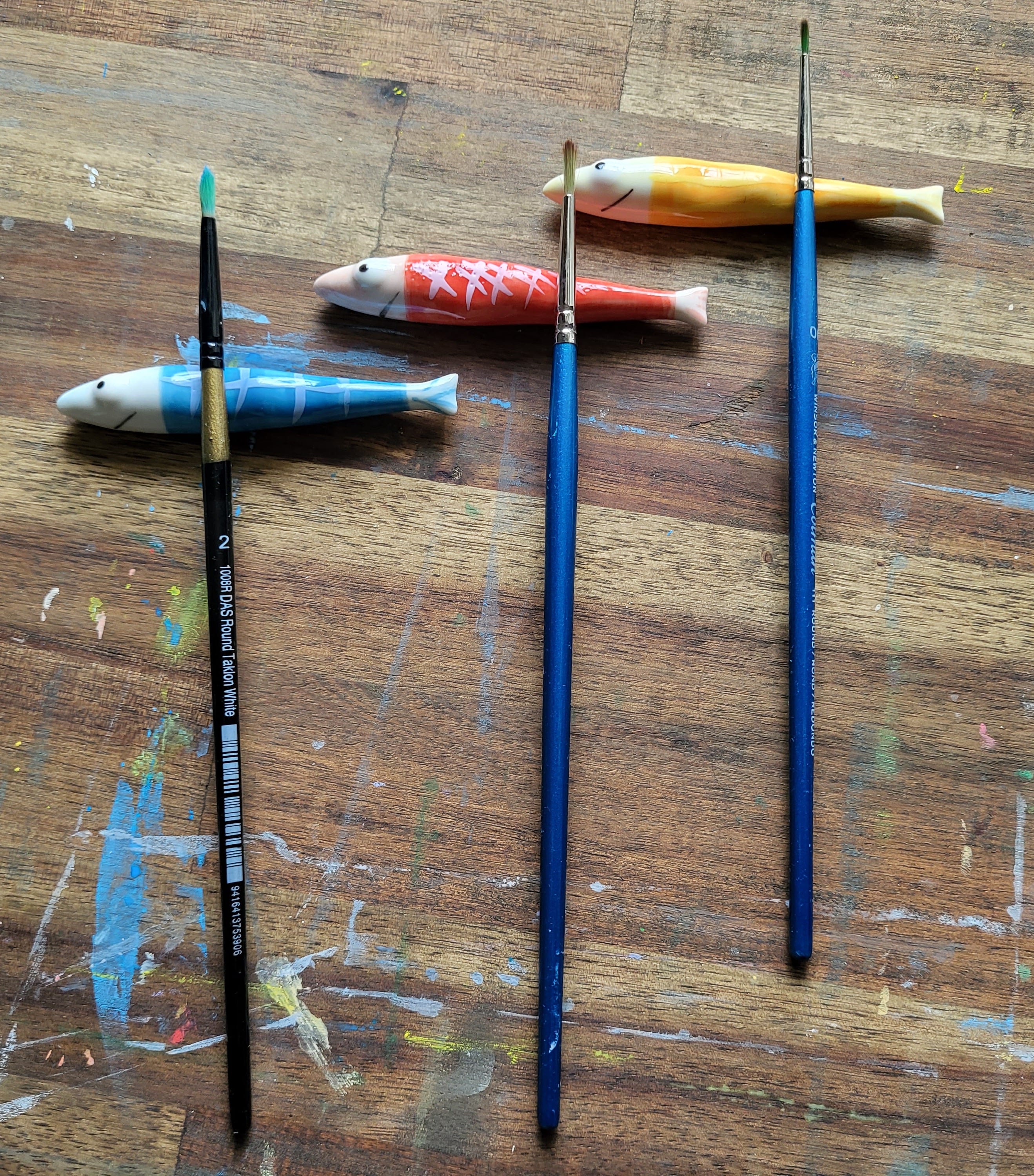 I also purchased some brush holders. They came in a three pack. Finally no rolling around brushes.